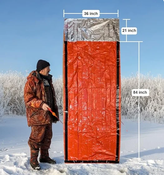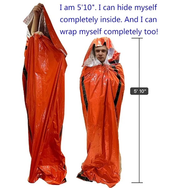 Isikhwama sokulala esiphuthumayo sokusinda singandisa amathuba akho okusinda kuwo wonke isimo sezulu, zonke izinkathi kanye nazo zonke izimo. Kwenziwa ngezinto ezihlala isikhathi eside ezihlanzekile ze-MyLar ezenziwe nge-NASA zokuhlola isikhala. Igcina / ikhombisa emuva 90% yokushisa komzimba. Kuyinto esetshenziswayo, engangeni manzi nemoya.