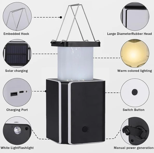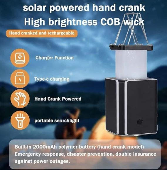 I-LED SOLAR Camping Light, Amakhampasi aphuthumayo Lantern Lantern Isibanimandla se-Hand-Crank Power