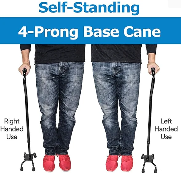I-Old Man Medical Can, i-prong ngayinye imbozwe nge-anti slip rubber can can tip ngokuqina okwengeziwe nokuphepha. Isizinda se-Quad sikwenza kube ngumhlanga wokuzimela okuqeda ukuwa noma ukulahla phansi. Iphelele ngemuva kokuhlinzwa lapho ungakwazi ukugoba noma ukufinyelela.