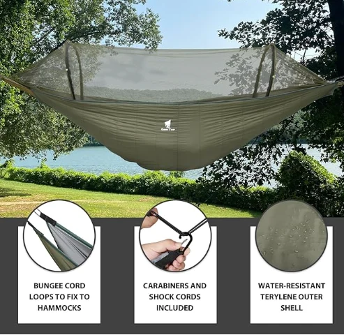 Ukuhamba Camping Hammock, hlanganisa induduzo yesikhwama sokulala kanye nokufakwa kwe-hammock, kwenze kube lula ukulingana nanoma yiliphi i-hammock elijwayelekile, ukukugcina ufudumele ekubandakanyeke kwesimo sezulu. Iphelele ukukhempa, ukubuyela emuva, ukuzingela, imisebenzi yangaphandle, izintaba